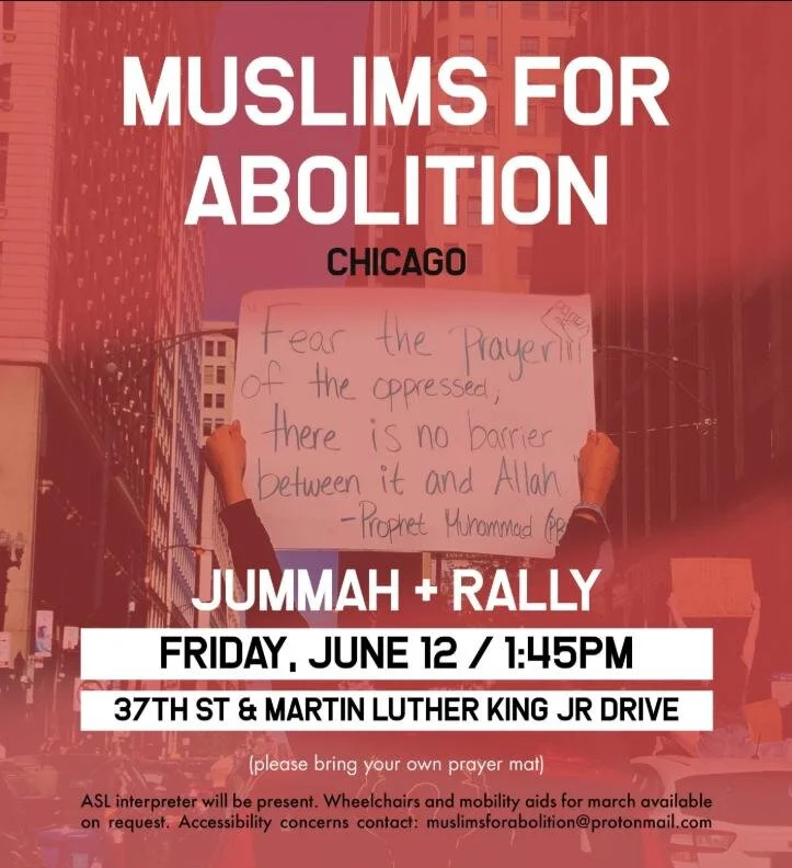 Believers Bail Out are organizing a march and Jumu’ah prayer in the South Side neighborhood of Bronzeville. BBO have chosen this location for historic and strategic purposes. The planned march will gather at the Ida B Wells memorial site on the corner of 37th St and Dr Martin Luther King Jr Dr. This location carries special meaning for it is catty-cornered from her past residence, where Wells lived much of her life while leading the fight against lynching. From there BBO will conduct a brief march and then hold Jumu’ah service. After this service, BBO hope to give space for Black Muslims and community members to speak out against the oppression they have endured at the hands of the police and show solidarity to not only George Floyd but also Black Muslims and Black Non-Muslims across the country.