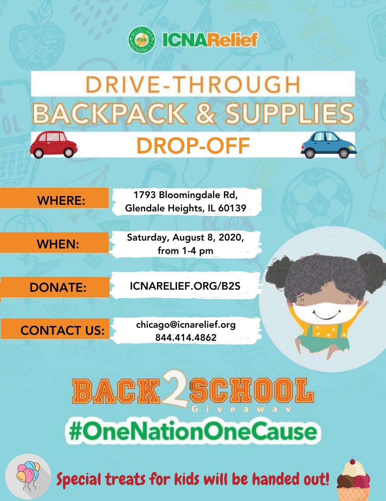ICNA Relief Drive Thru Backpack & School Supply Drop Off