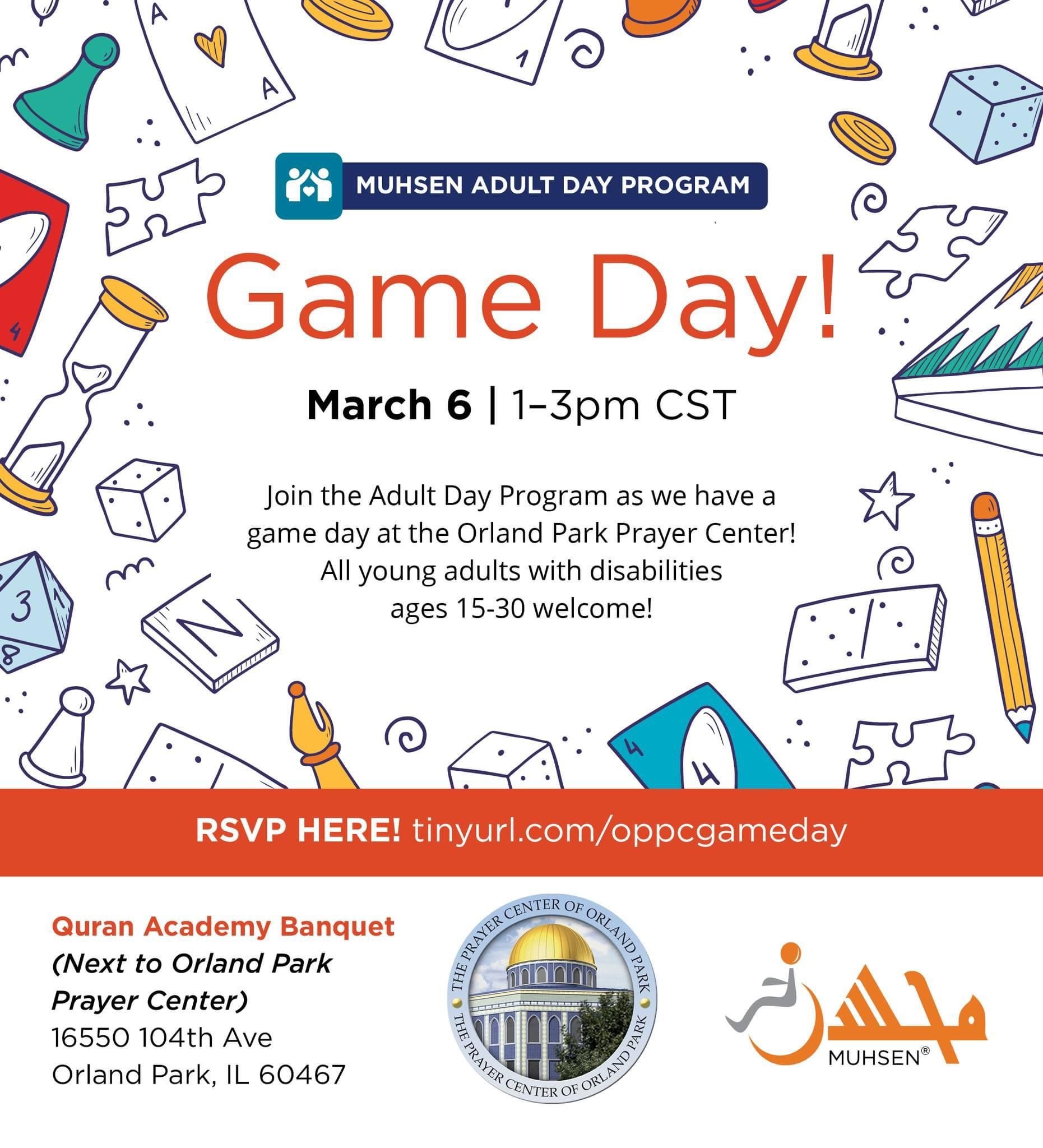 Back to All Events MUHSEN Adult Day Program - Game Day! Sunday, March 6, 2022 1:00 PM 3:00 PM Google Calendar ICS