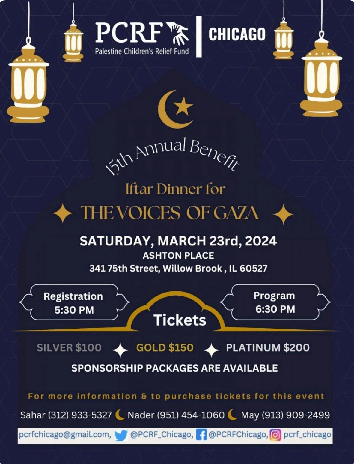 Back to All Events 15th Annual Benefit - Iftar Dinner for The Voices of Gaza Saturday, March 23, 2024 5:30 PM 6:30 PM Google Calendar ICS