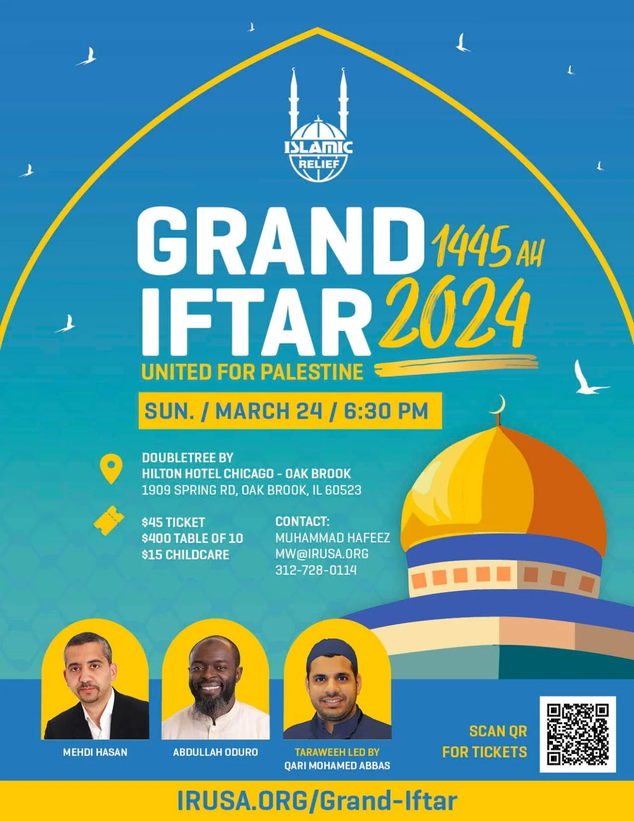 Back to All Events Islamic Relief Grand Iftar Sunday, March 24, 2024 6:30 PM 8:30 PM Google Calendar ICS