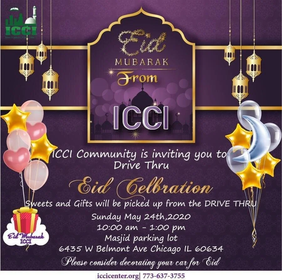 Join ICCI for a drive thru Eid celebration on Sunday, May 24th, from 10am to 1pm